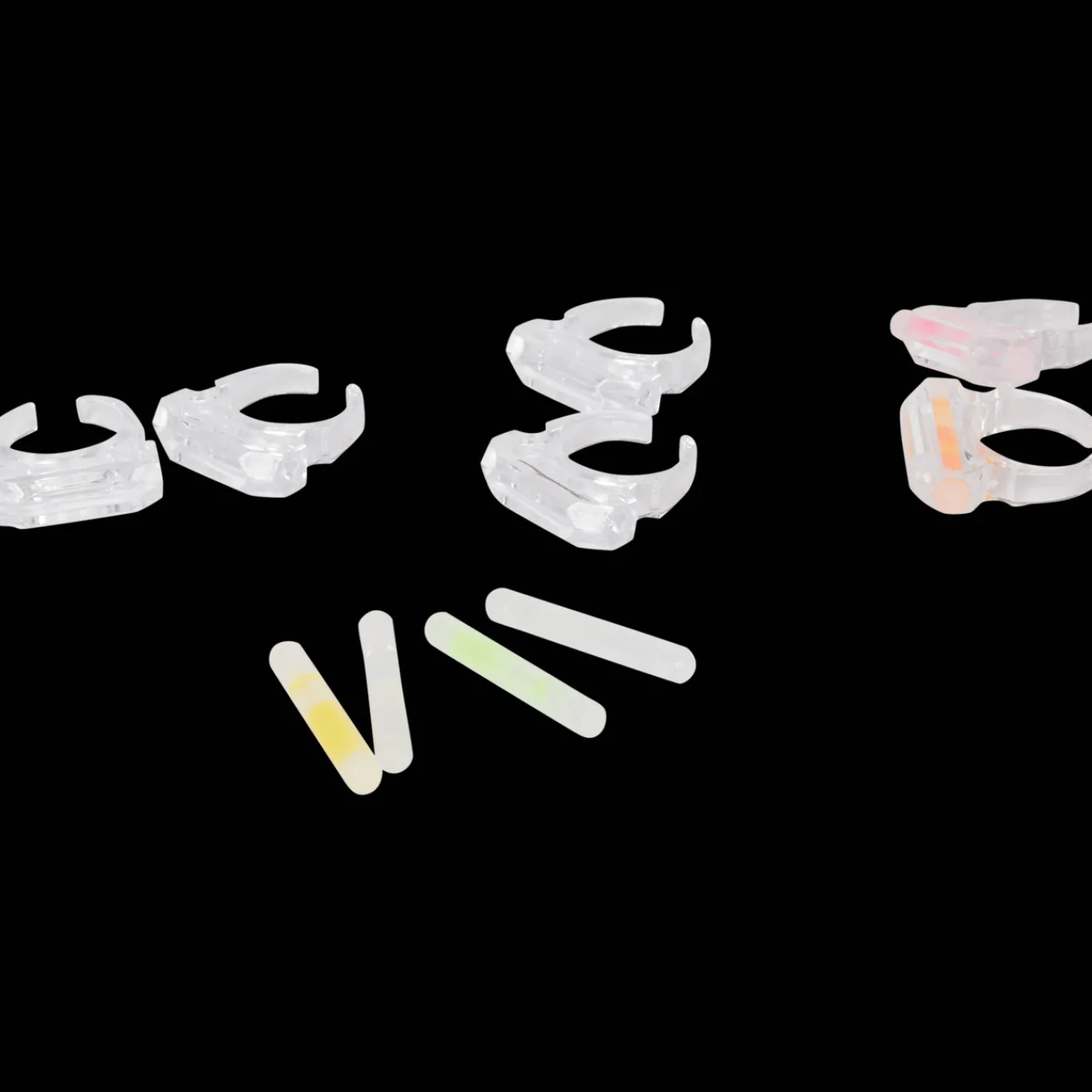 Maak de blits op feestjes met deze glow in the dark-ringen en gloeistaafjes in verschillende kleuren.