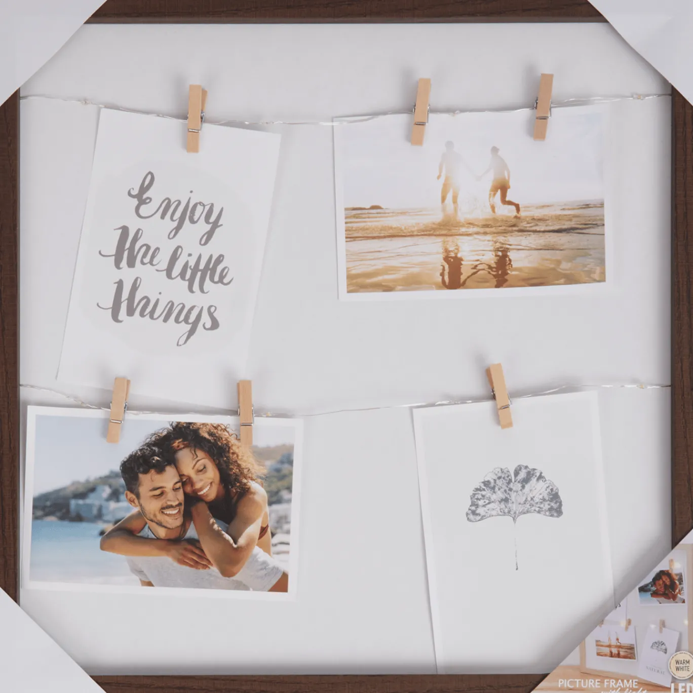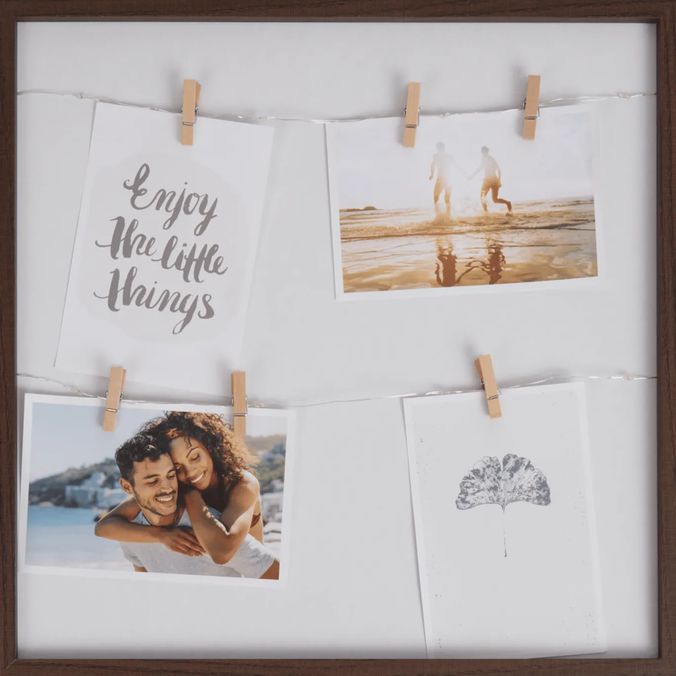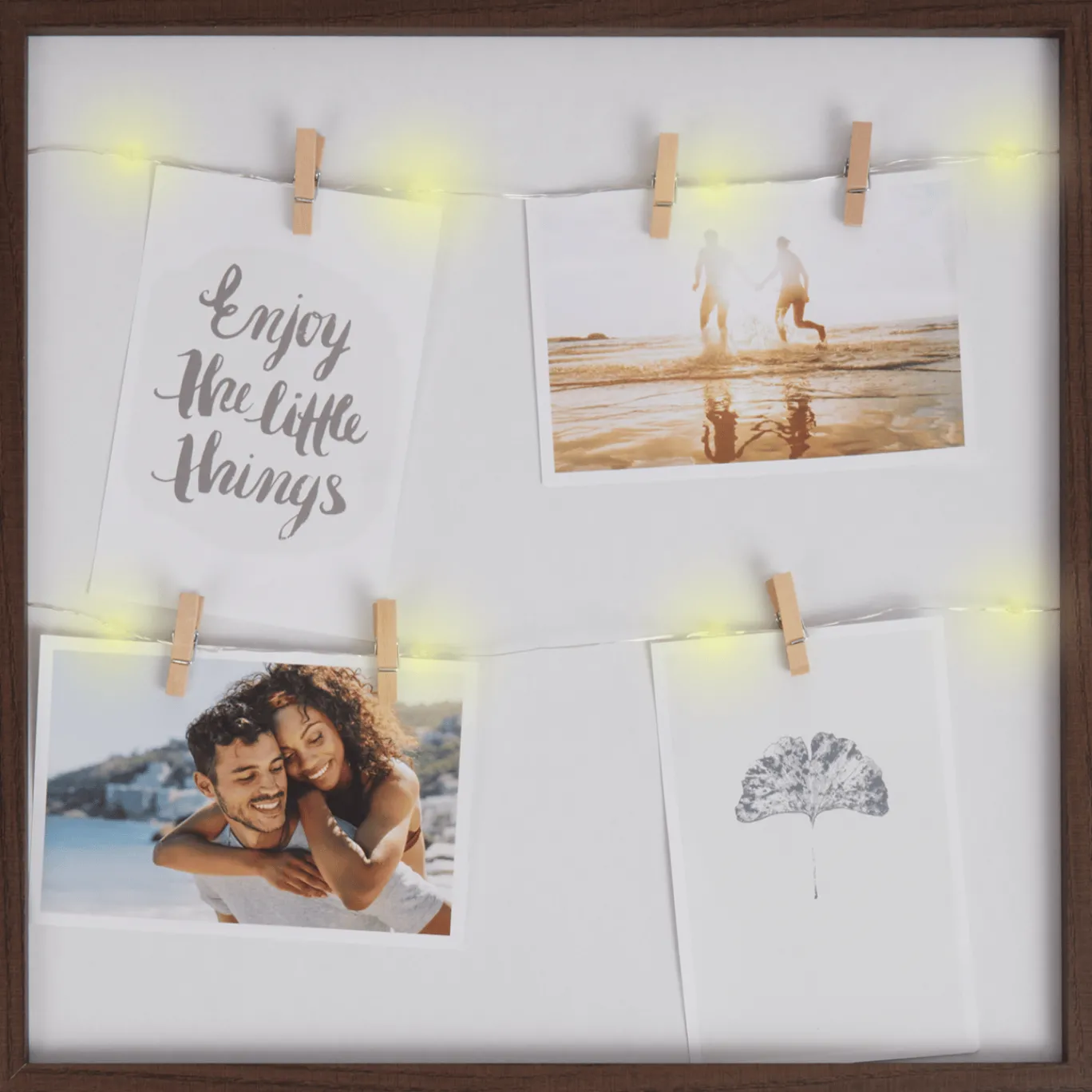 Bewaar al je mooiste herinneringen in dit gezellige fotolijstje. De lichtjes en knijpers geven een superleuke en gezellige uitstraling aan je interieur.