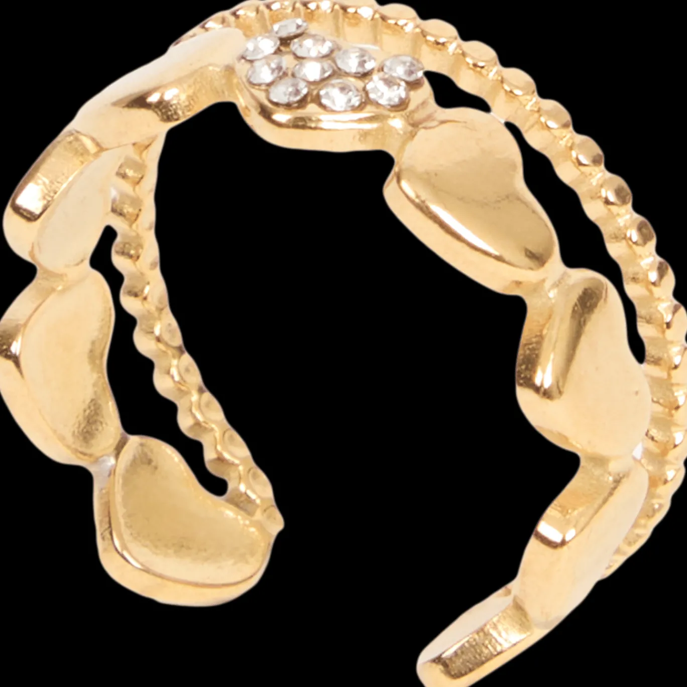 Geef je dagelijkse look moeiteloos een feestelijk tintje met deze dubbele ring.