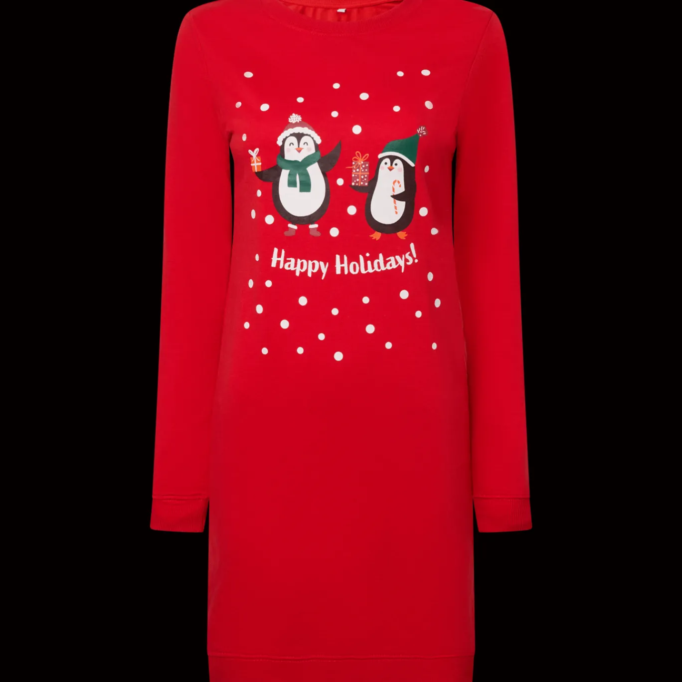 Maak dit jaar de blits tijdens het familie-kerstfeest met deze lekker zittende sweatjurk met vrolijke kerstprint.