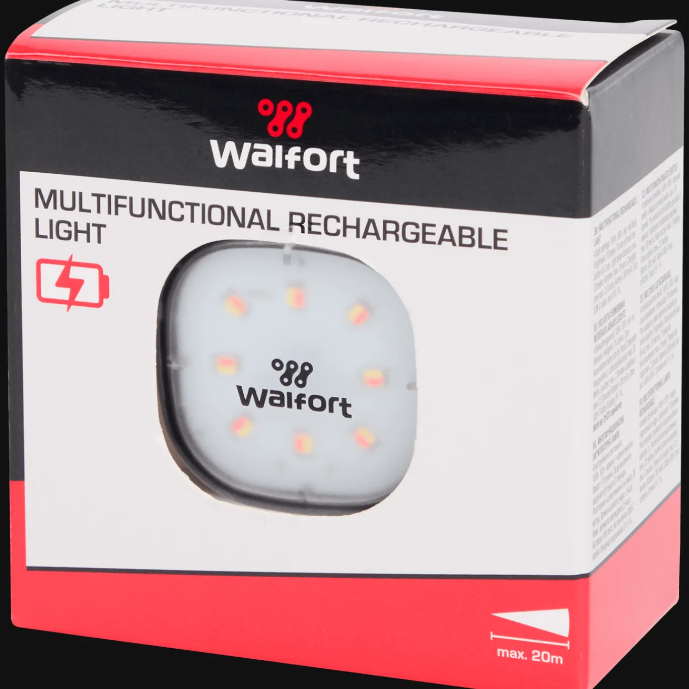 Dit Walfort oplaadbare ledlampje is multifunctioneel. Je bevestigt hem eenvoudig aan je fiets of iets anders en stelt hem met de drukknop in op een van de 4 standen: 100%, 50%, rood en rood knipperend. Het lampje werkt maximaal 2 uur en je laadt hem volledig op in 2,5 uur.